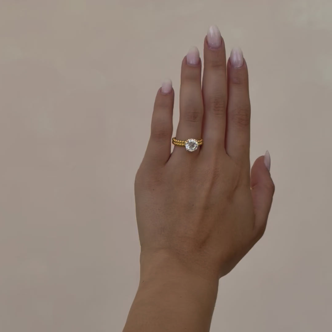 This elegant engagement ring showcases a Truly Exceptional™ center stone of your choice. The unique double-beaded band design adds texture and dimension, creating a bold yet refined solitaire look. Available in 14k yellow gold, white gold, rose gold, or platinum. The robust beaded design not only provides a unique style but also ensures a comfortable and secure fit, making it a perfect choice for everyday wear without compromising on style or sophistication.