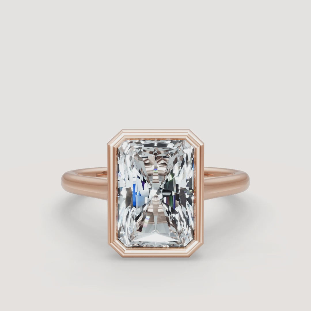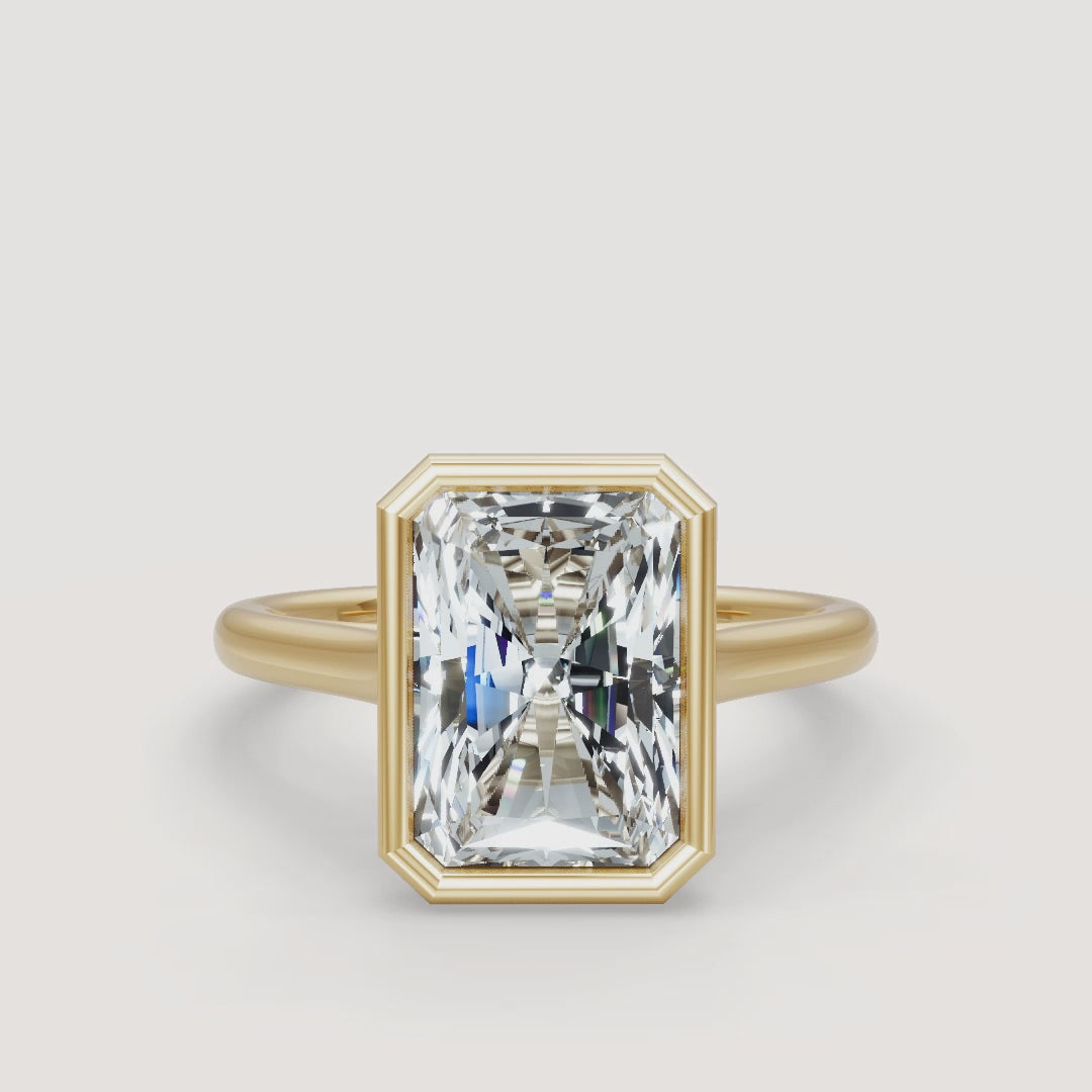The Floating Bezel Engagement Ring is a stunning example of minimalist sophistication. Featuring a Truly Exceptional™center stone of your choice, the clean bezel setting securely frames the diamond while allowing for maximum brilliance. The gentle arches of the cathedral band not only provide structural support but also add the floating design which elevates the center stone above the delicate band. Crafted in 14k yellow gold, white gold, rose gold, or platinum, this ring is perfect for those seeking a refined and unique design.