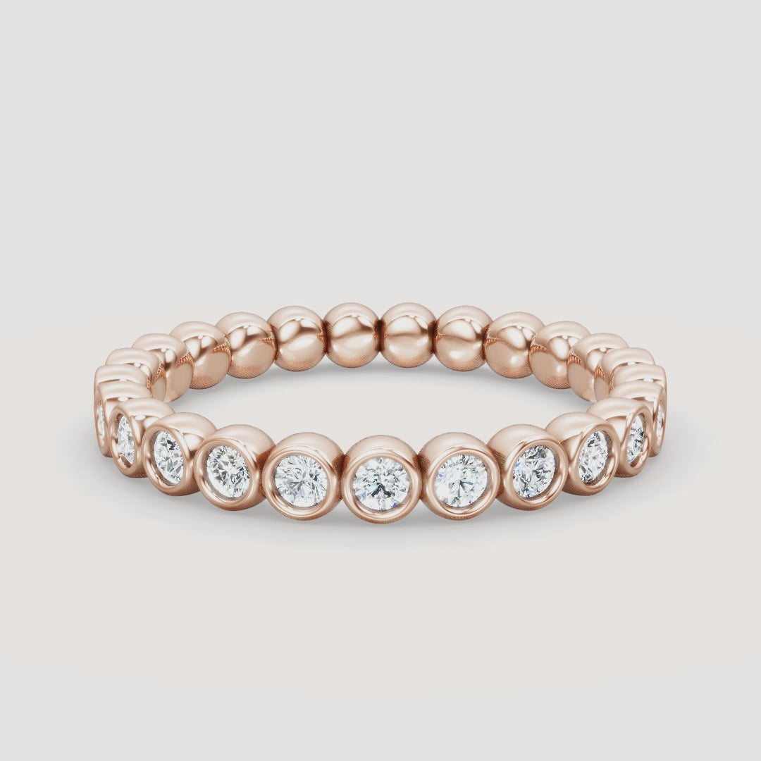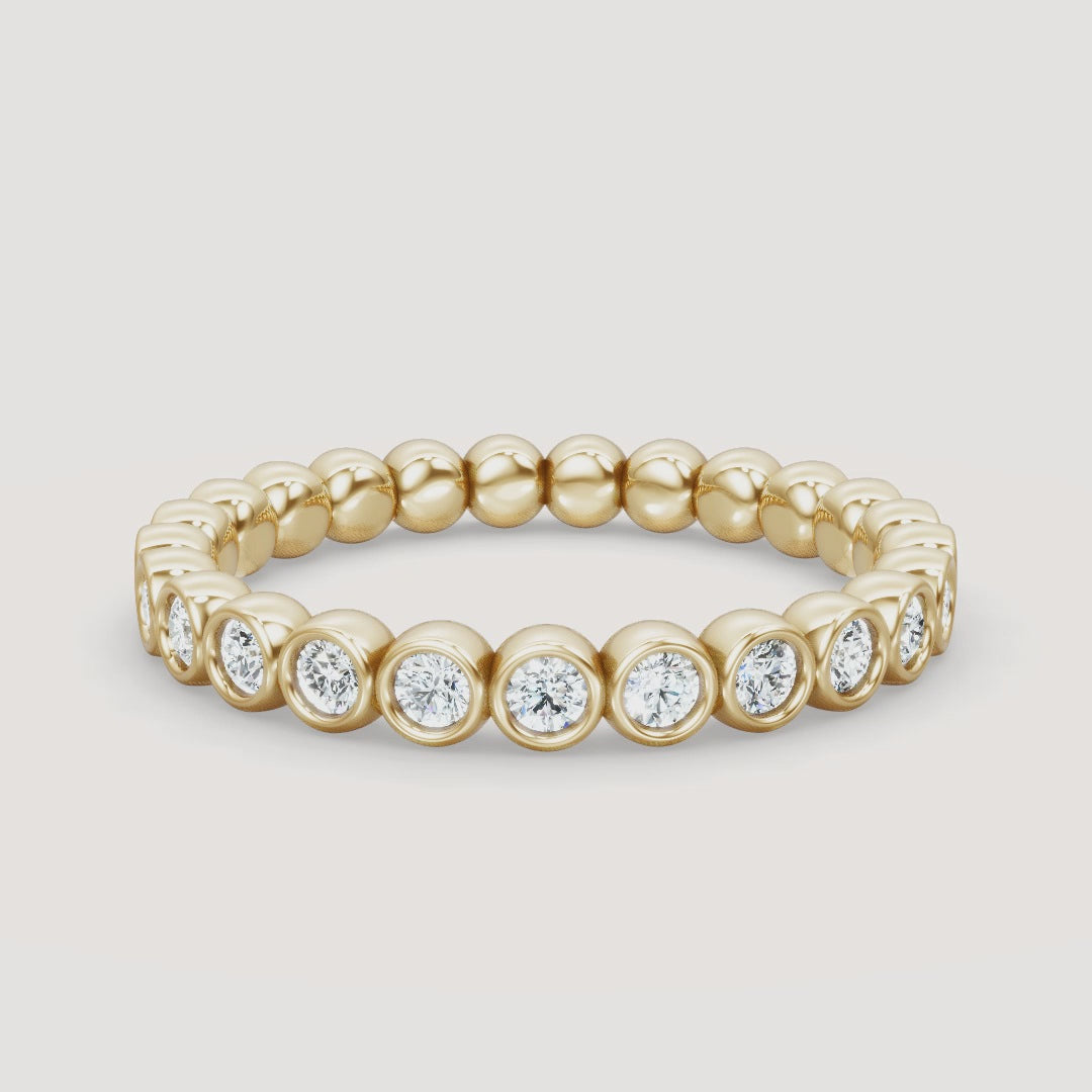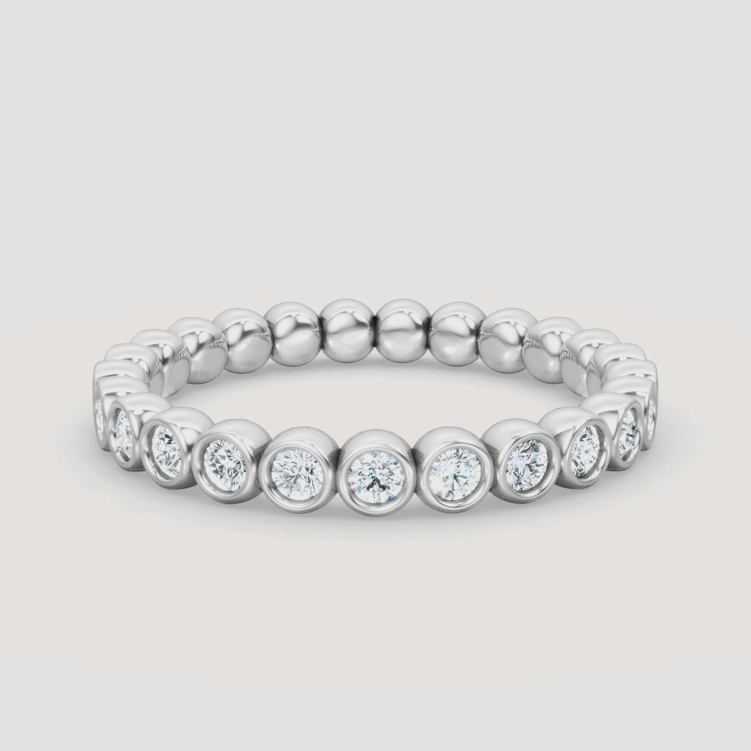 This eternity band features a row of full bezel-set round stones (approximate total carat weight of 0.63). Crafted to last, the bold beaded band adds a touch of texture and uniqueness. Available in 14k yellow gold, white gold, rose gold, or platinum, this ring is a perfect modern twist to the traditional eternity band.