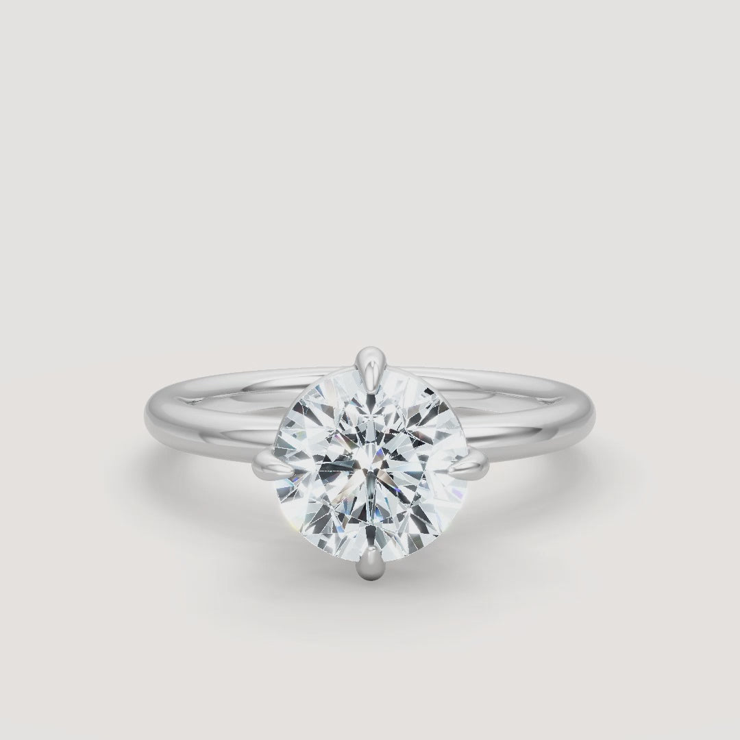 This classic solitaire ring features compass prongs, adding a modern and distinctive touch to its timeless design. Perfect for highlighting the center stone with elegance and simplicity.