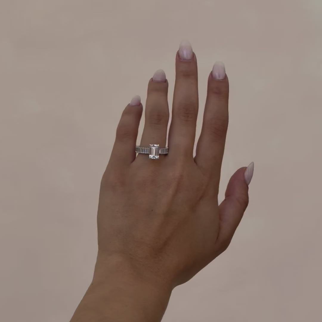 If you decide on a moissanite, our moissanite stones are always Colorless and beyond-eye-clean (DEF Color VVS Clarity), with a perfect cut which provides a pristine, icy appearance and ensures a flawless aesthetic.