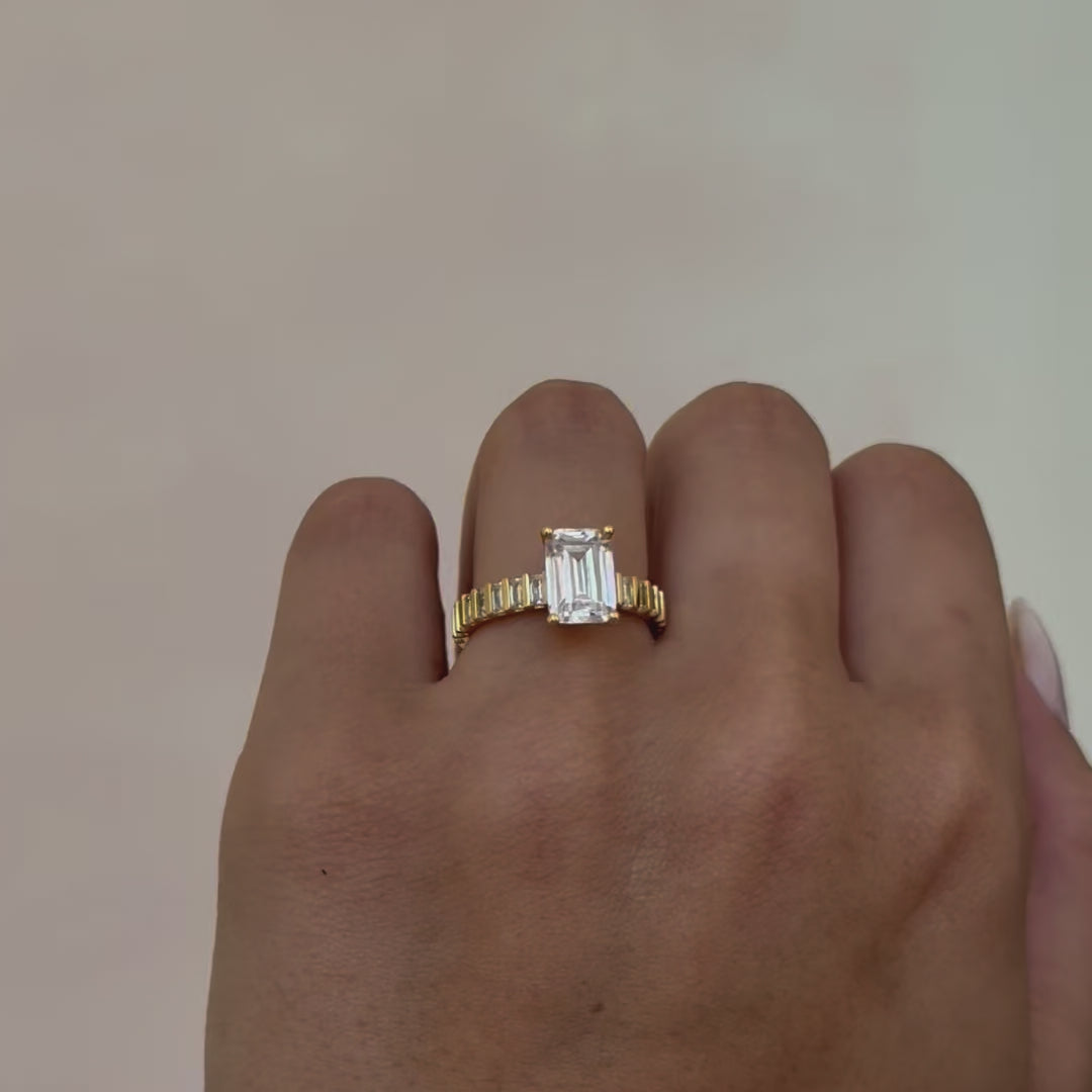 This stunning baguette engagement ring showcases a Truly Exceptional™ center stone of your choice, complemented by evenly spaced, flush-set baguette accent stones (approximate total carat weight of 1.2). Available in 14k yellow gold, white gold, rose gold, or platinum, this bold band design perfectly balances modern elegance with timeless appeal.
