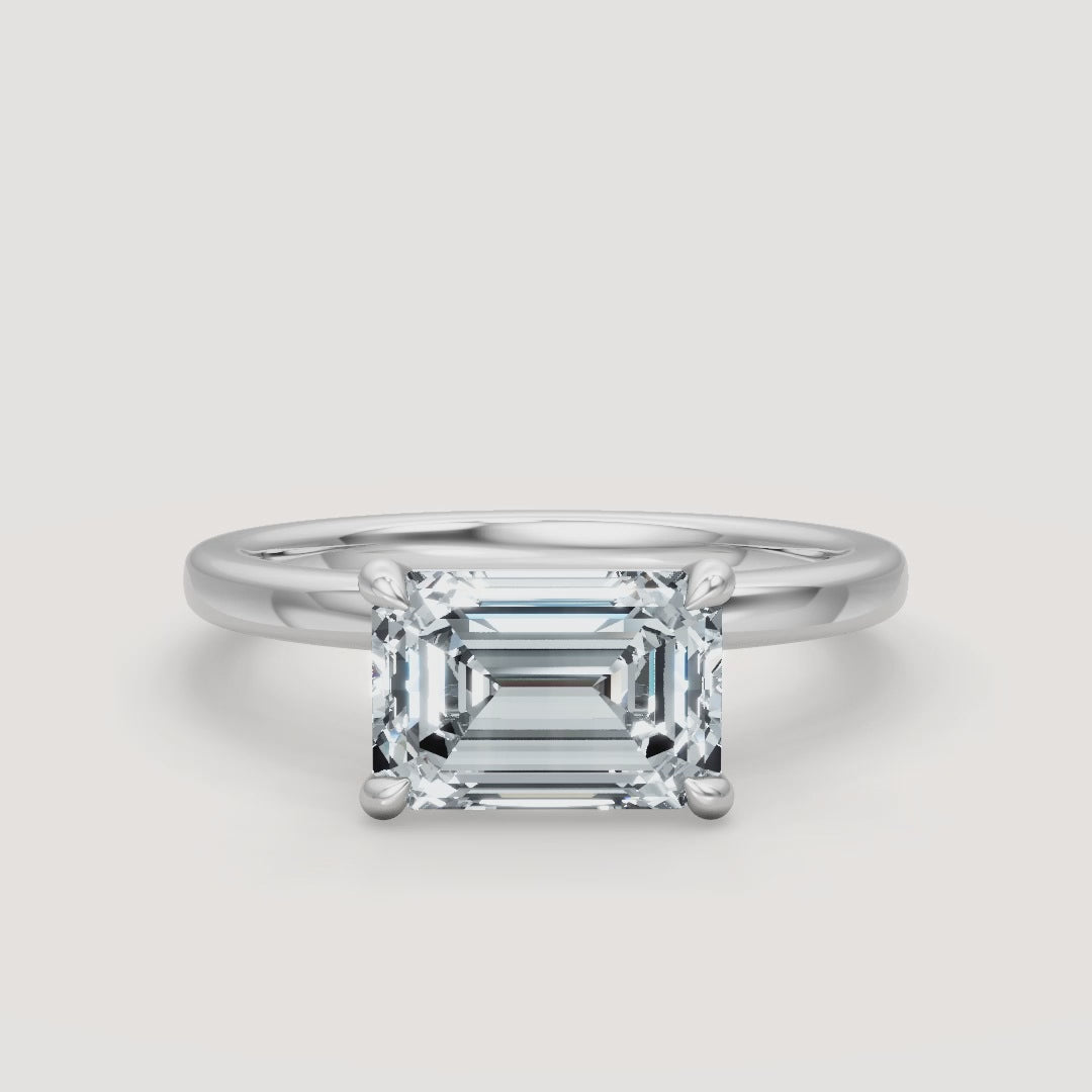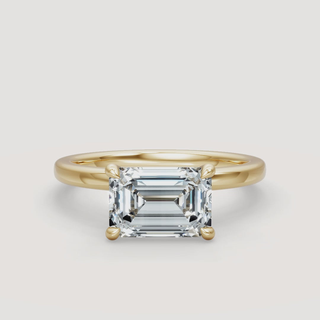 This off-center solitaire engagement ring features a unique design with a Truly Exceptional™ center stone of your choice. The off-center setting creates the illusion of a floating center stone, adding a modern and airy elegance. The minimalistic band, available in 14k yellow gold, white gold, rose gold, or platinum, offers a clean and sophisticated aesthetic that highlights the brilliance of the floating stone. This design is perfect for those seeking a timeless yet unique statement piece.