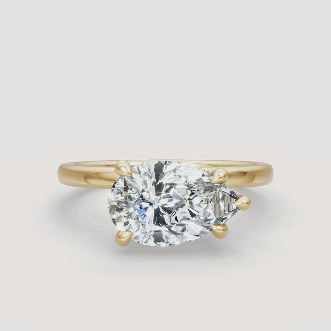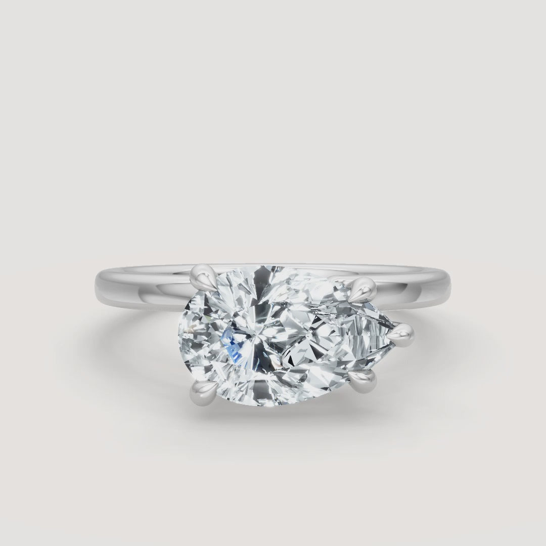 This off-center solitaire engagement ring features a unique design with a Truly Exceptional™ center stone of your choice. The off-center setting creates the illusion of a floating center stone, adding a modern and airy elegance. The minimalistic band, available in 14k yellow gold, white gold, rose gold, or platinum, offers a clean and sophisticated aesthetic that highlights the brilliance of the floating stone. This design is perfect for those seeking a timeless yet unique statement piece.