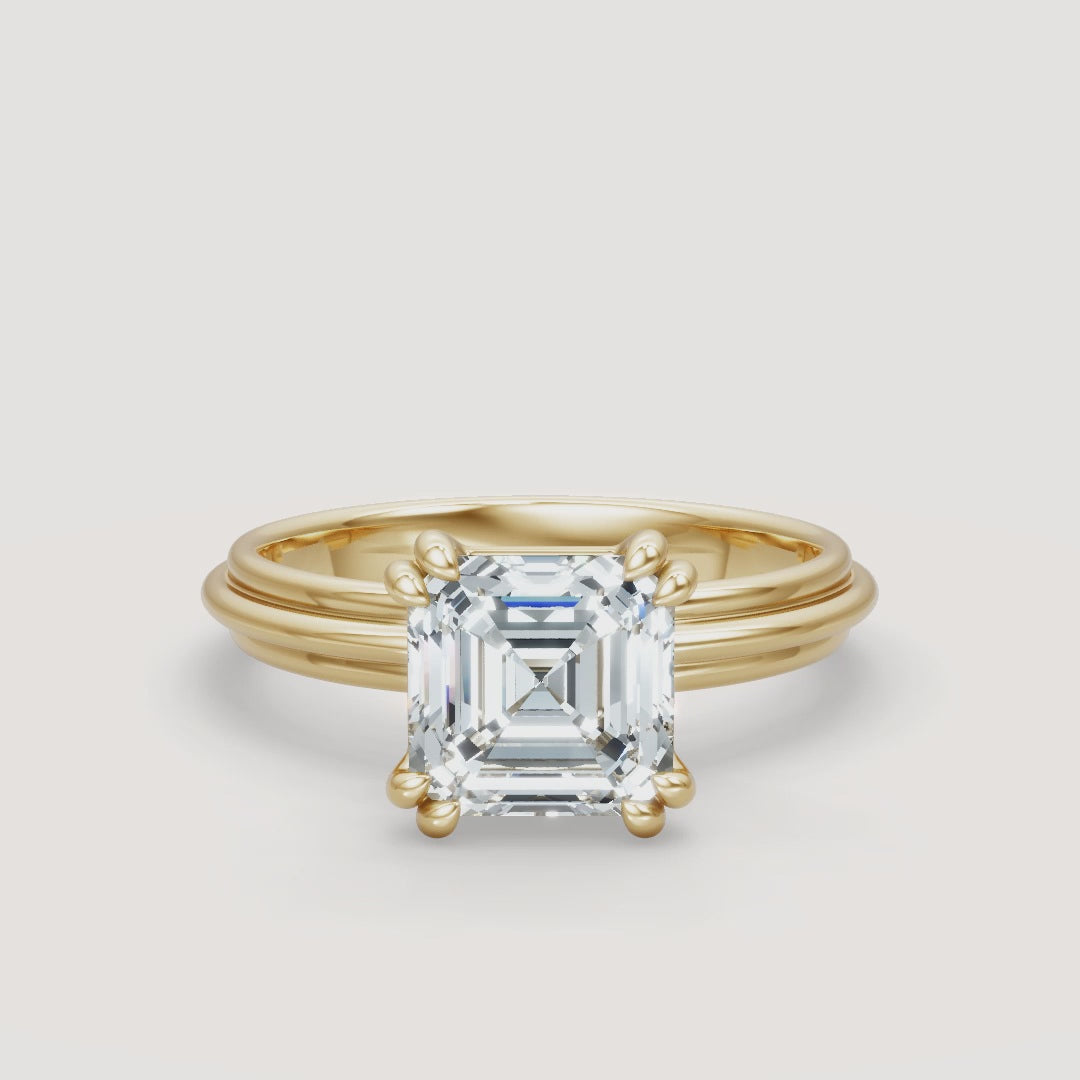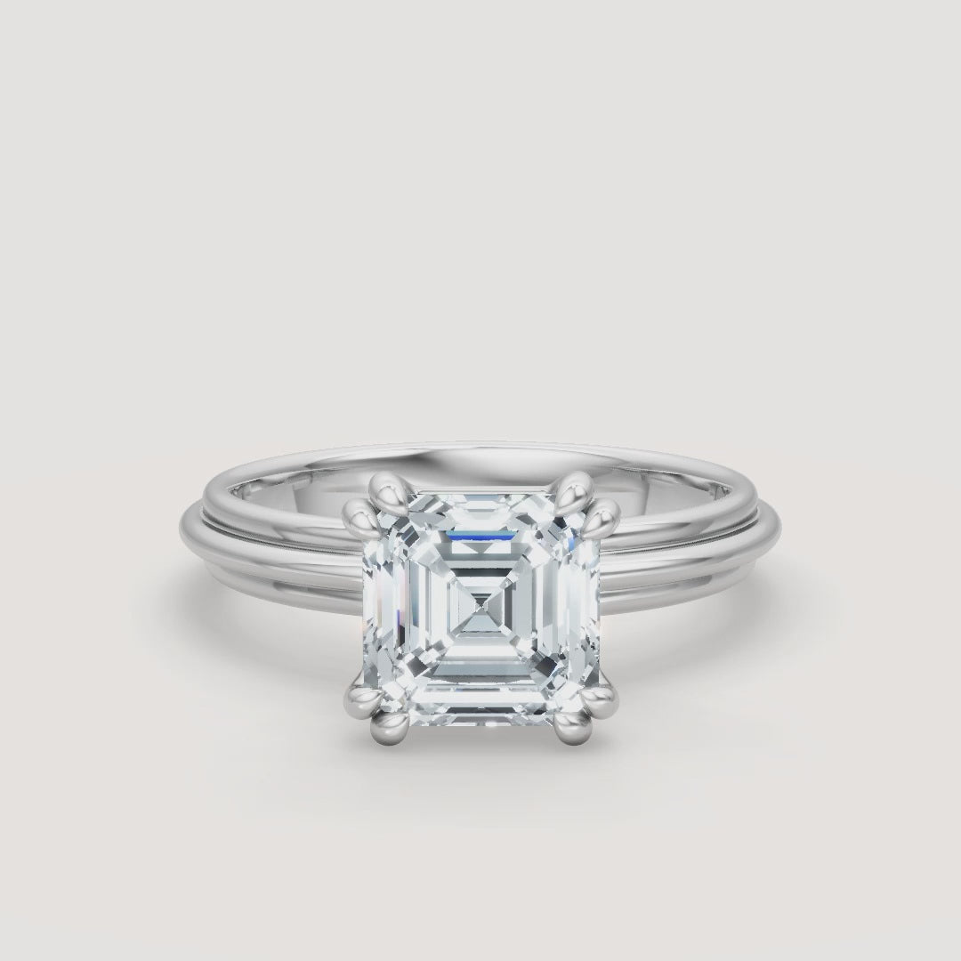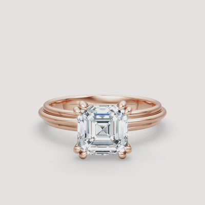 This beautiful solitaire engagement ring features double prongs bumped out band design, combining modern style with timeless elegance. The double prongs ensure secure placement of the center stone, while the bump band adds a unique touch.