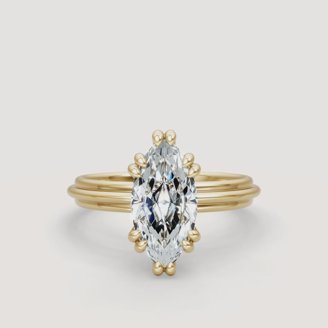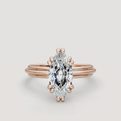 This beautiful solitaire engagement ring features double prongs bumped out band design, combining modern style with timeless elegance. The double prongs ensure secure placement of the center stone, while the bump band adds a unique touch.