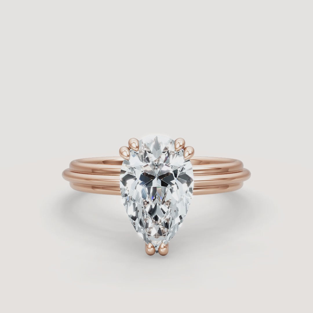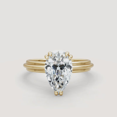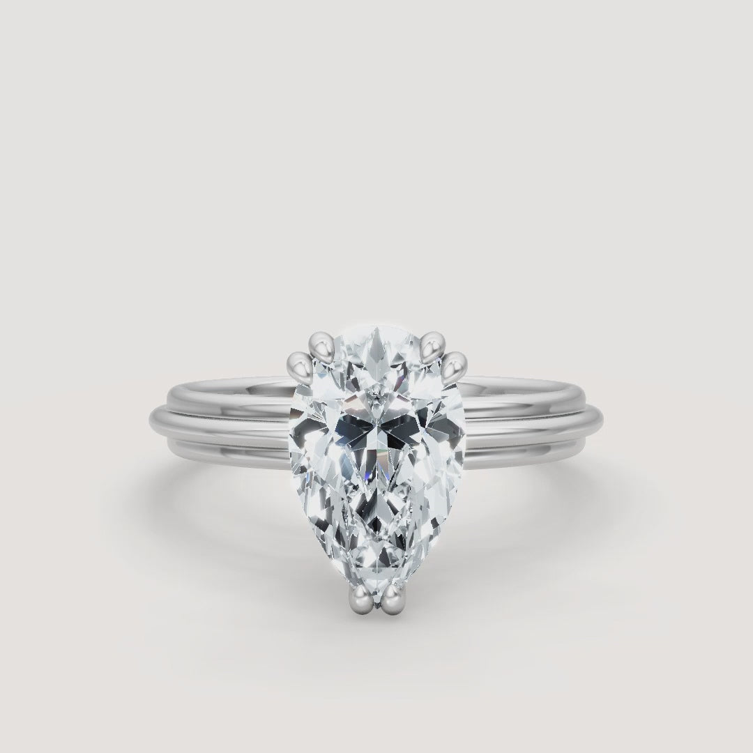 This beautiful solitaire engagement ring features double prongs bumped out band design, combining modern style with timeless elegance. The double prongs ensure secure placement of the center stone, while the bump band adds a unique touch.