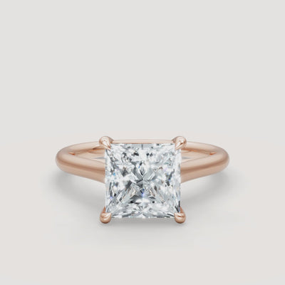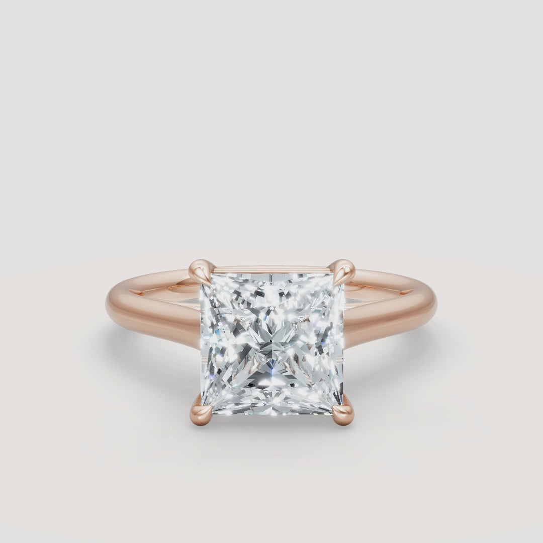 • Cathedral Setting: The diamond is elevated by a cathedral setting, lifting the stone while providing a grand stage for its brilliance.