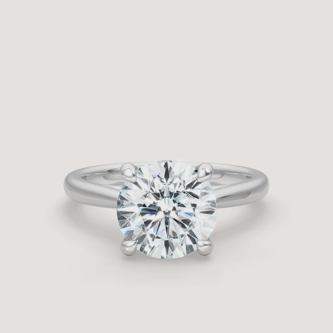 This cathedral solitaire ring features a slightly higher setting, accentuating the center stone and adding an elegant lift to its timeless design.