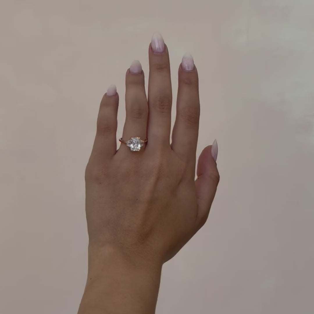 If you decide on a moissanite, our moissanite stones are always Colorless and beyond-eye-clean (DEF Color VVS Clarity), with a perfect cut which provides a pristine, icy appearance and ensures a flawless aesthetic.